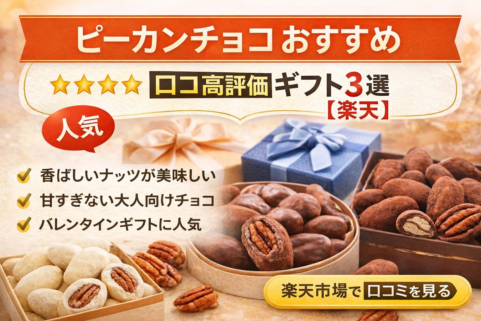 ピーカンチョコ おすすめ|口コミ評価が高いギフト3選【楽天】